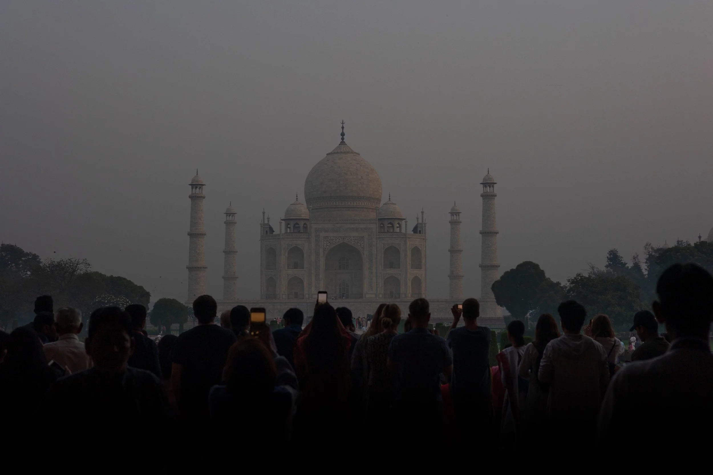 Crowds gather to see the Taj Mahal at Dawn, Agra, India